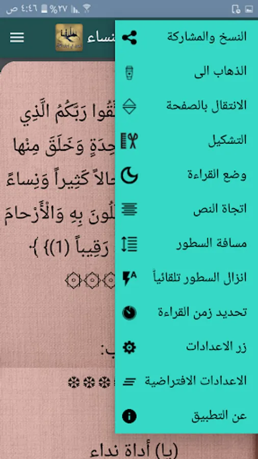 ◉ The possibility of changing the background color of reading the page to hundreds of colors.