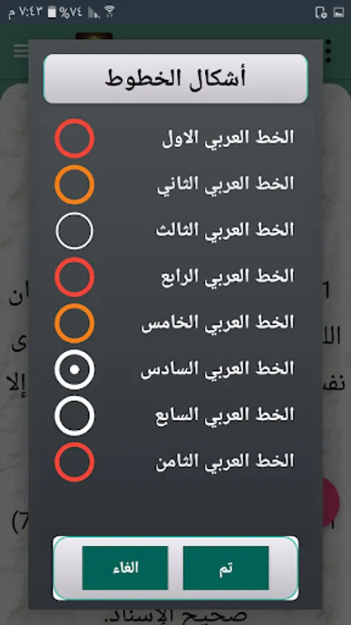 ◉ The ability to change the font shape within 8 Arabic fonts.