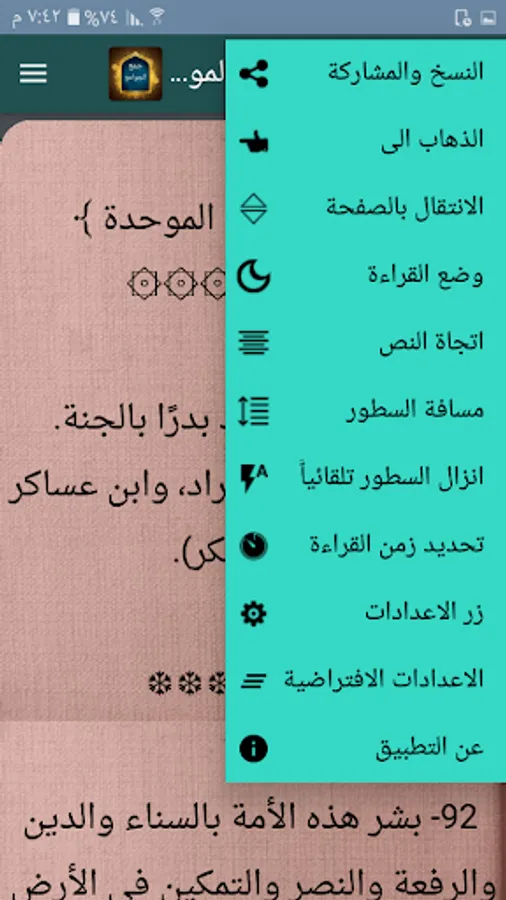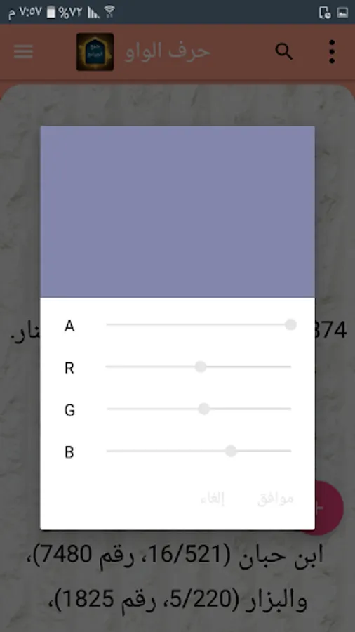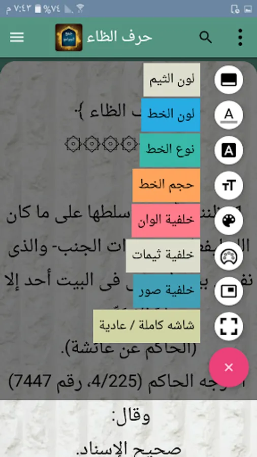 ◉ The possibility of changing the background color of reading the page to hundreds of colors.