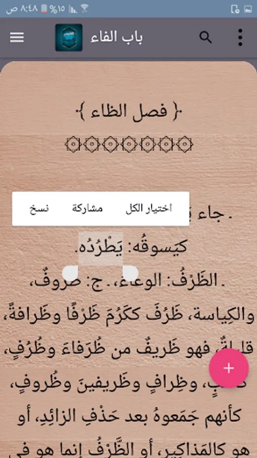 ◉ The possibility of copying and sharing any specific part of the section through prolonged pressure.