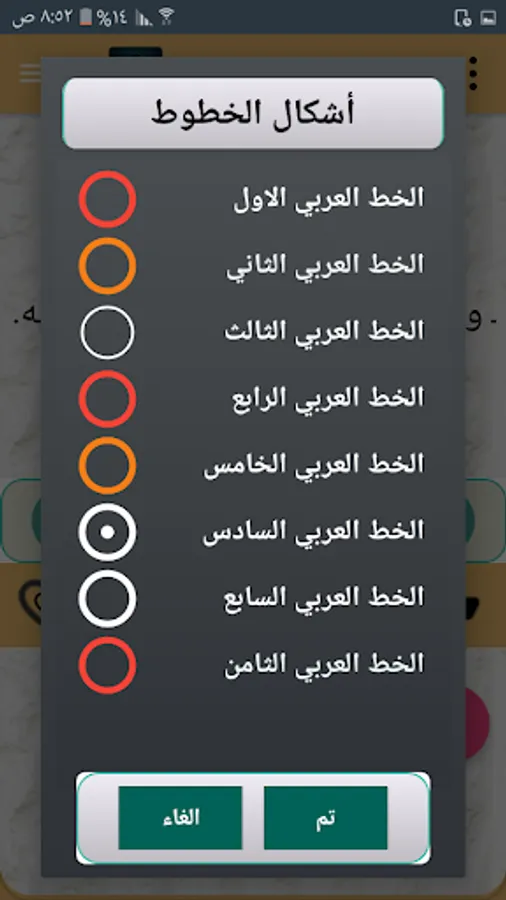 ◉ The ability to change the font shape within 8 Arabic fonts.