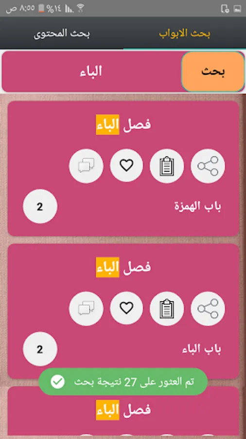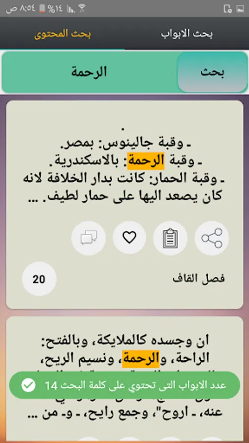◉ A section for internal search for the chapters of each book.