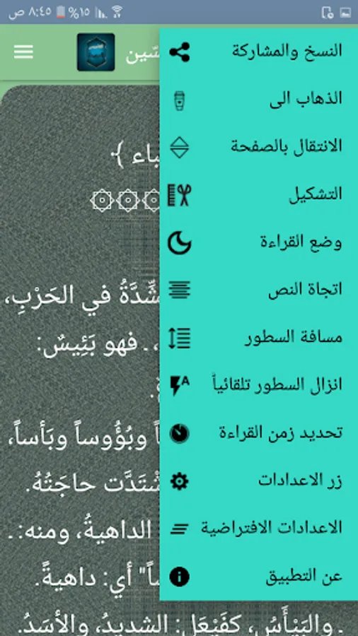 ◉ The possibility of changing the background color of reading the page to hundreds of colors.