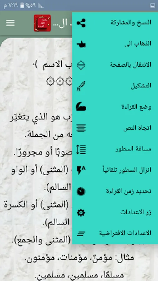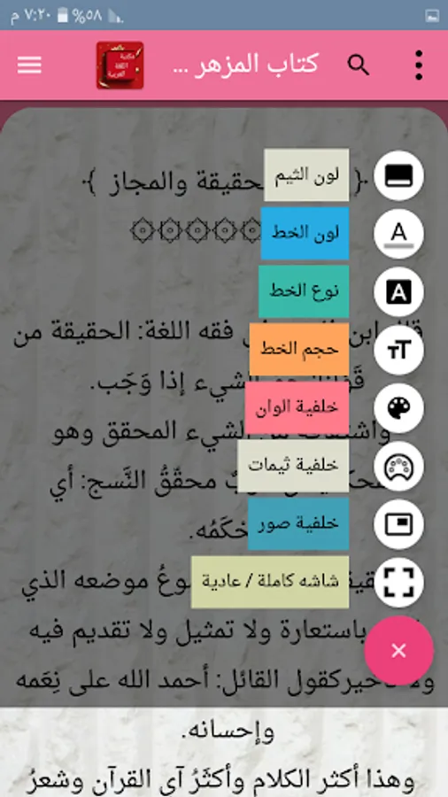 ◉ The possibility of changing the background color of reading the page to hundreds of colors.