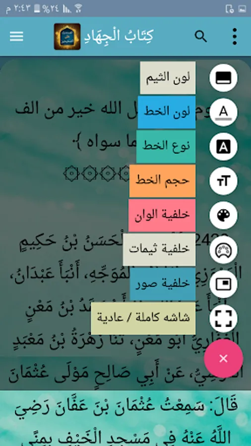 ◉ The possibility of changing the background color of reading the page to hundreds of colors.