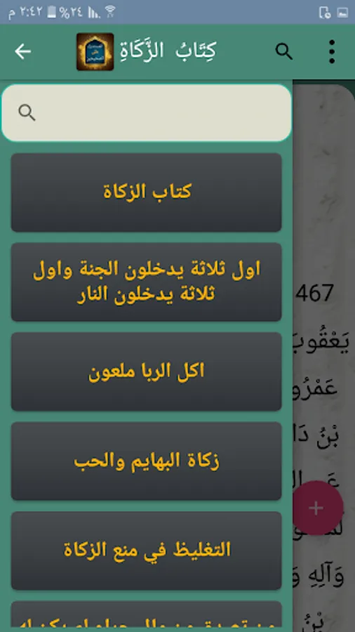 ◉ A section for internal search for the chapters of each book.