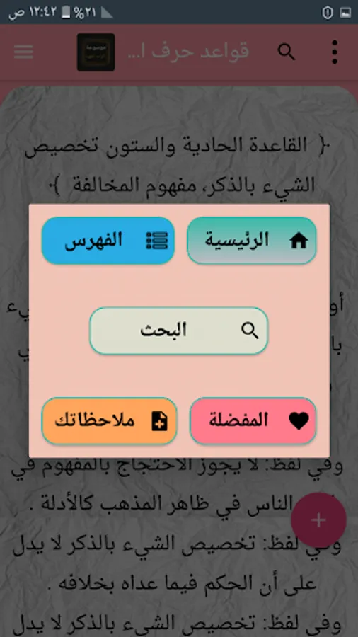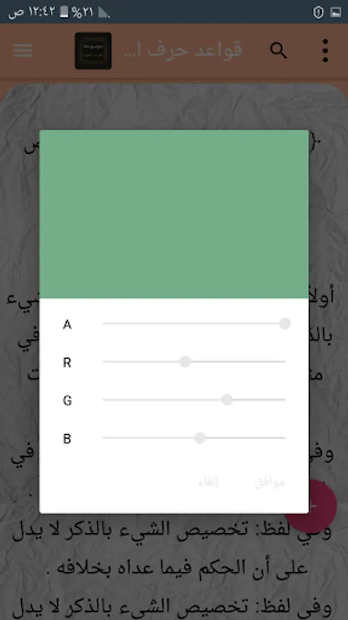 ◉ The possibility of changing the background color of reading the page to hundreds of colors.