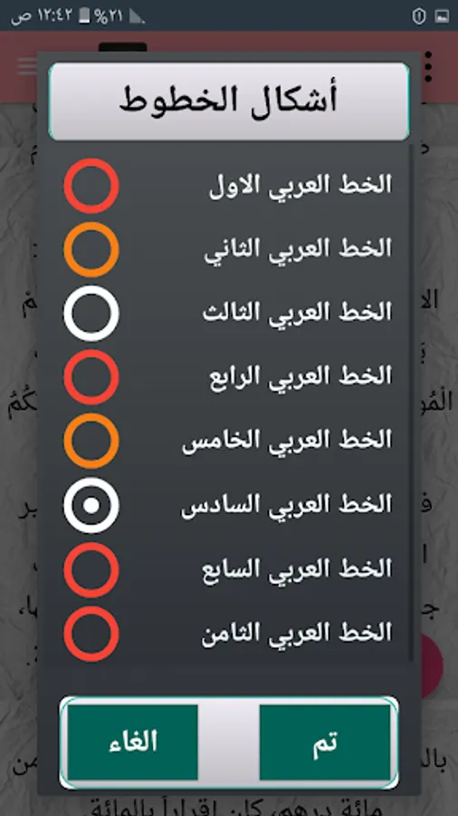 ◉ The ability to change the font shape within 8 Arabic fonts.