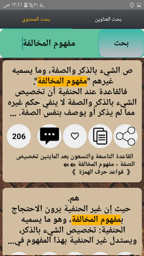 ◉ The possibility of copying and sharing any specific part of the section through prolonged pressure.