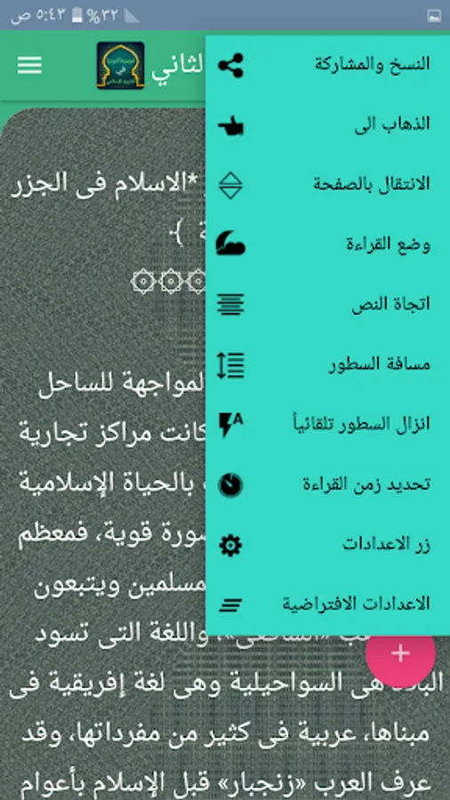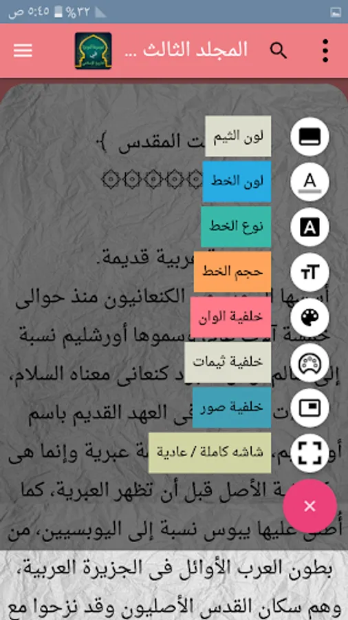 ◉ The possibility of changing the background color of reading the page to hundreds of colors.