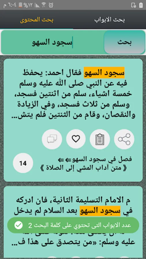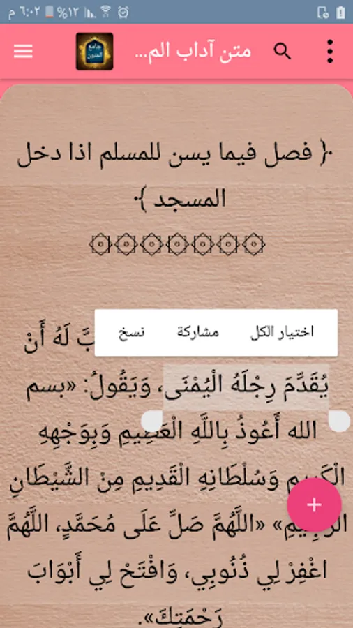 ◉ The possibility of copying and sharing any specific part of the section through prolonged pressure.