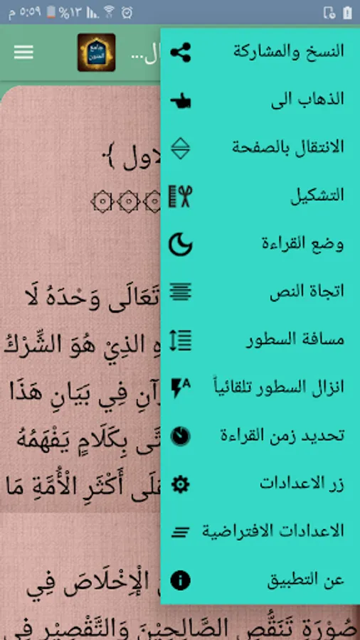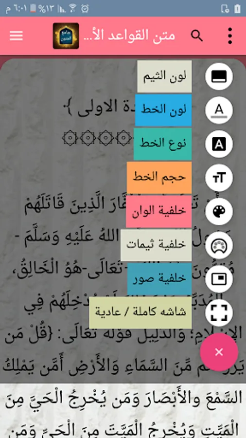 ◉ The possibility of changing the background color of reading the page to hundreds of colors.