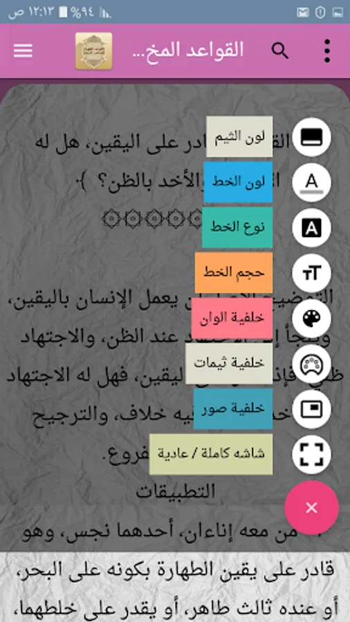 ◉ The possibility of changing the background color of reading the page to hundreds of colors.