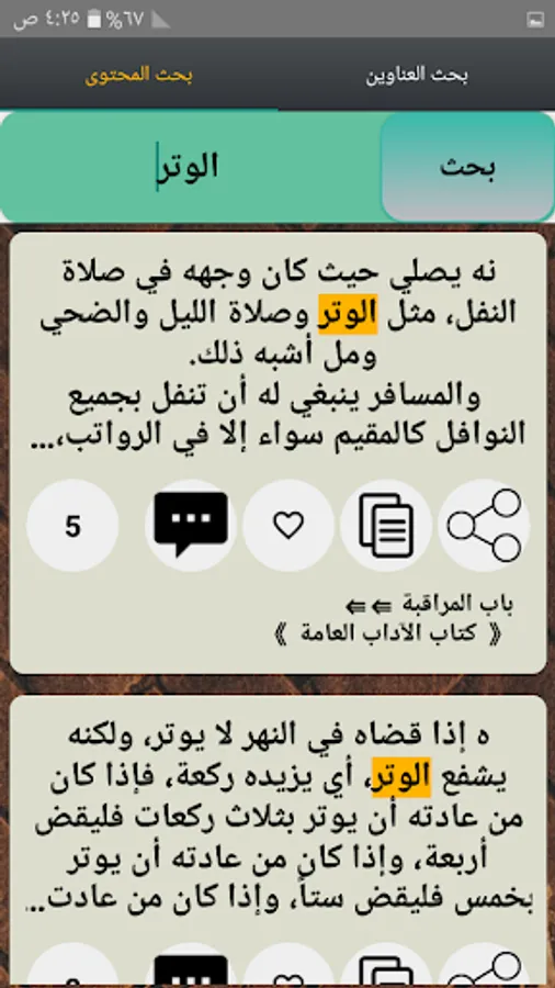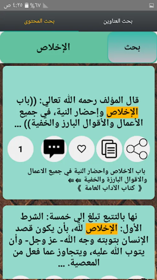 ◉ The possibility of copying and sharing any specific part of the section through prolonged pressure.