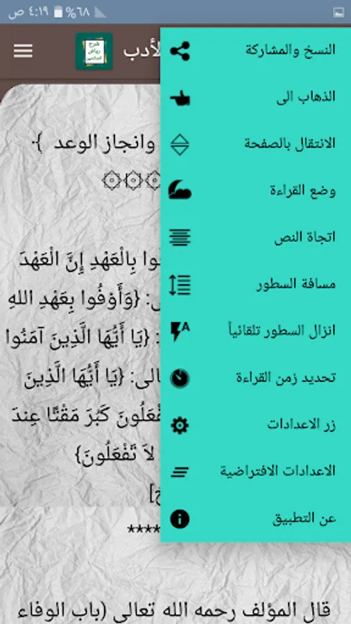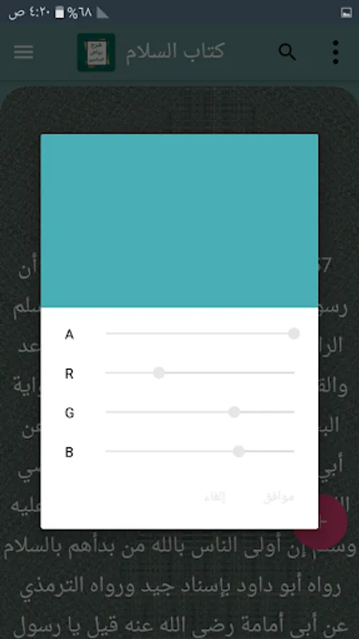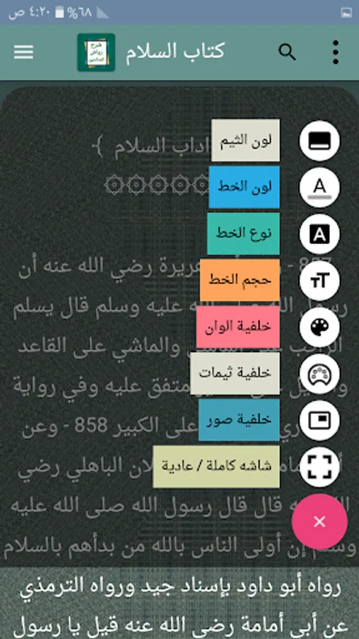 ◉ The possibility of changing the background color of reading the page to hundreds of colors.
