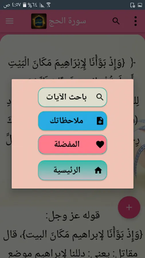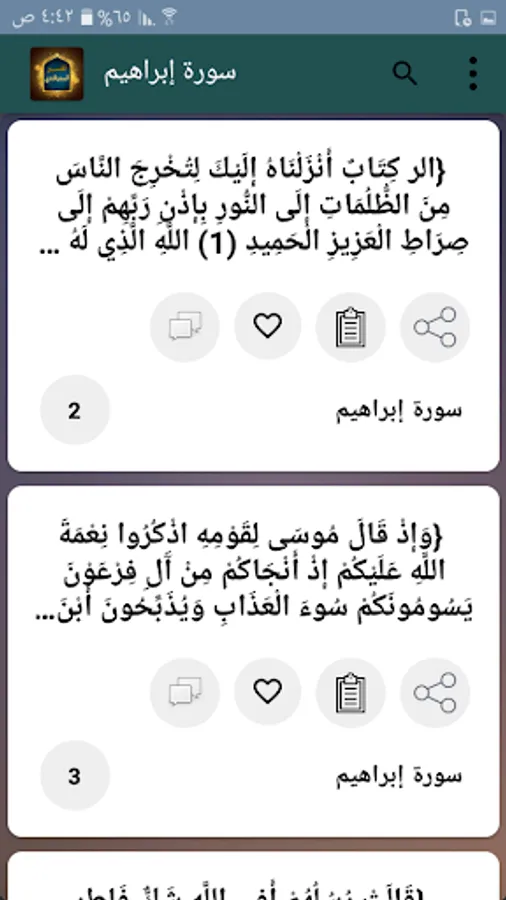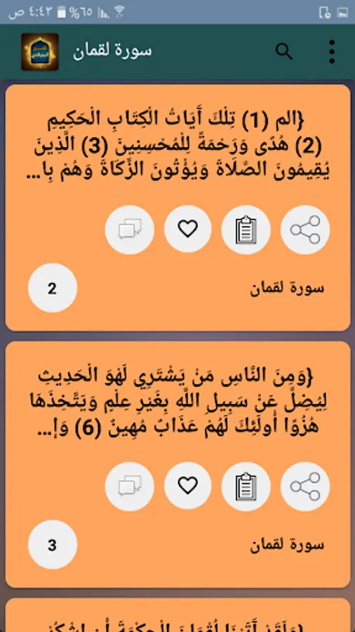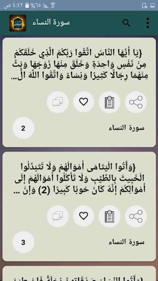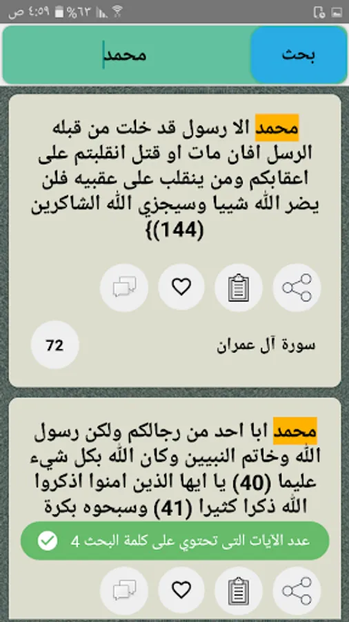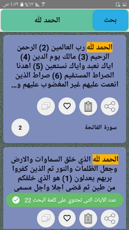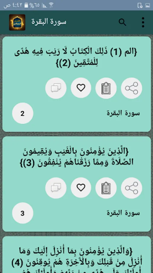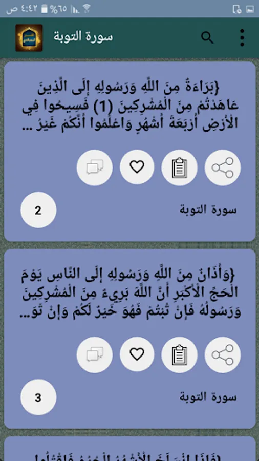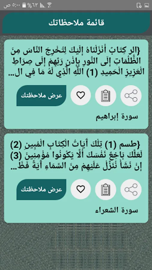 ◉ The possibility of copying and sharing any specific part of the verse and interpretation through prolonged pressure.