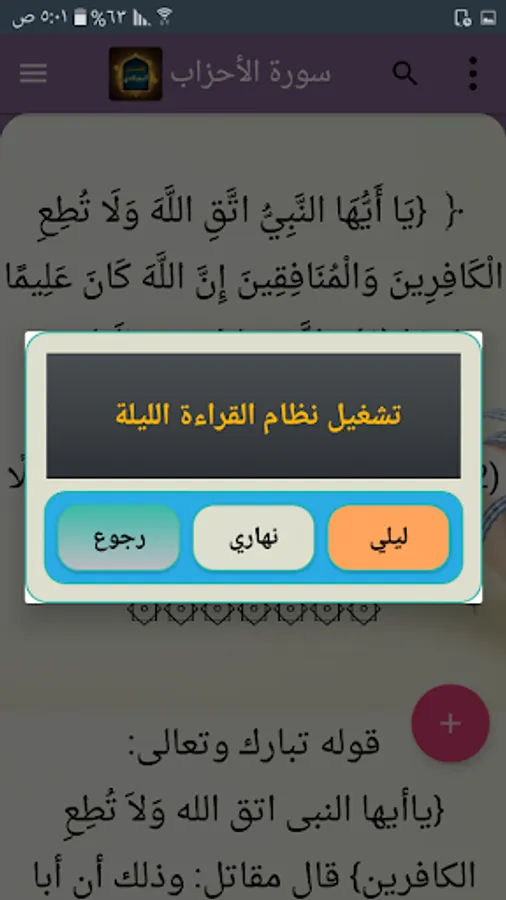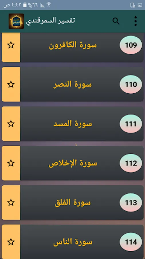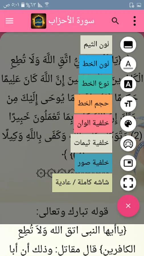 ◉ A side menu containing all the verses of the surah for quick presentation and transition between them.