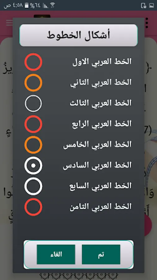 ◉ The ability to change the font shape within 8 Arabic fonts.