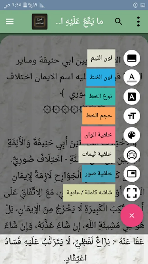 ◉ The possibility of changing the background color of reading the page to hundreds of colors.