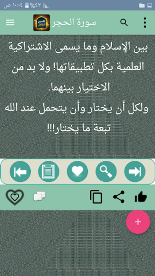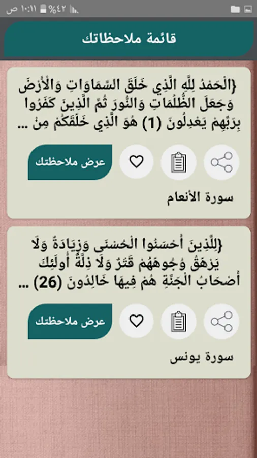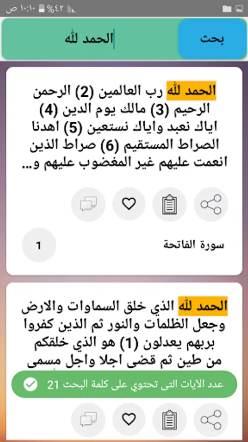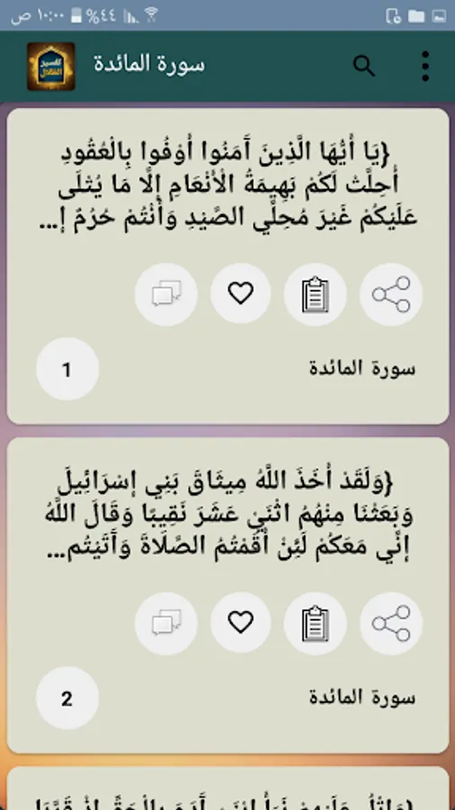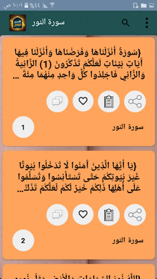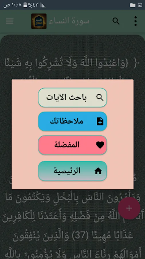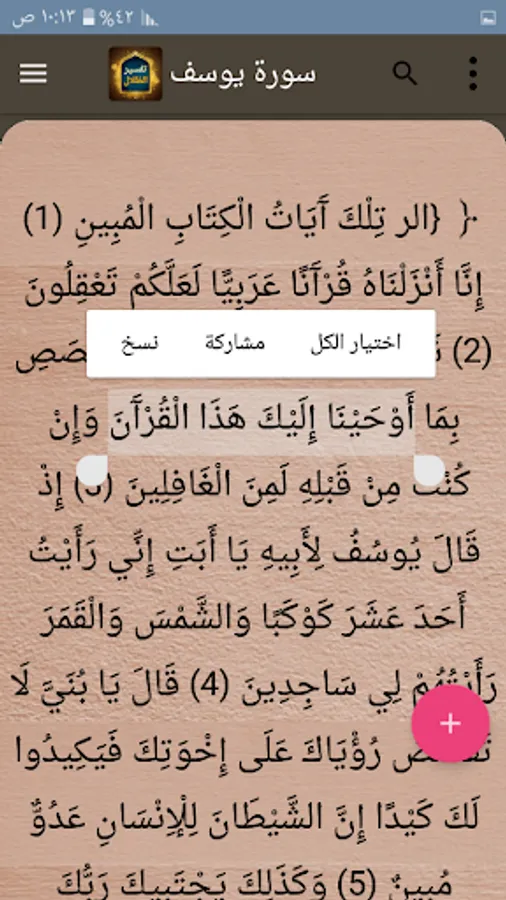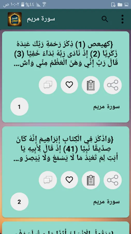 ◉ The possibility of copying and sharing any specific part of the verse and interpretation through prolonged pressure.