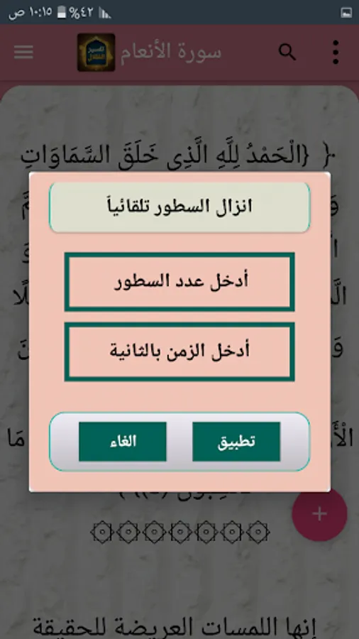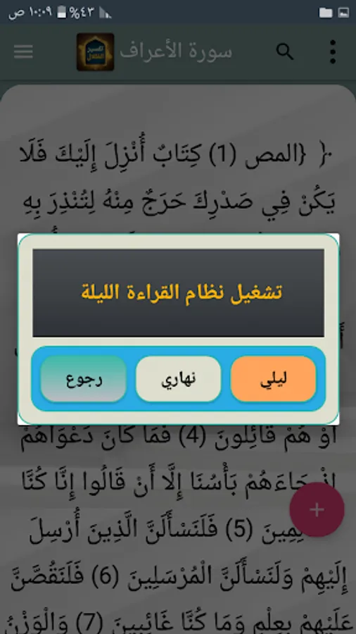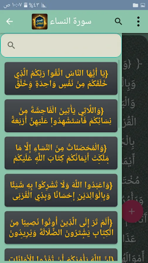 ◉ A side menu containing all the verses of the surah for quick presentation and transition between them.