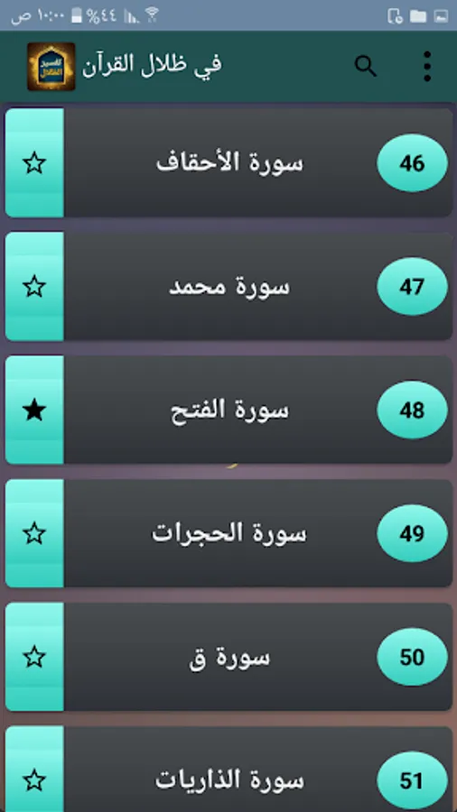 ◉ A list of the names of the blessed surahs.