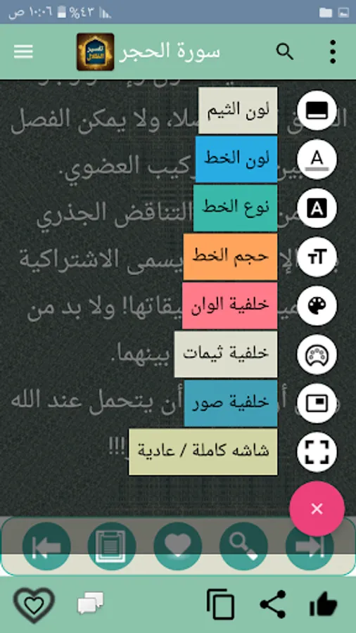 ◉ The possibility of changing the background color of reading the page to hundreds of colors.