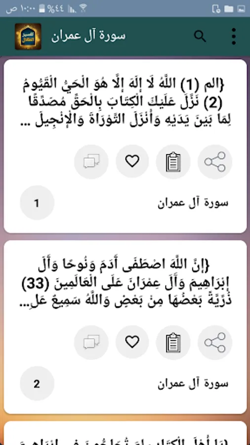 ◉ The ability to copy and share any verse with its full interpretation.