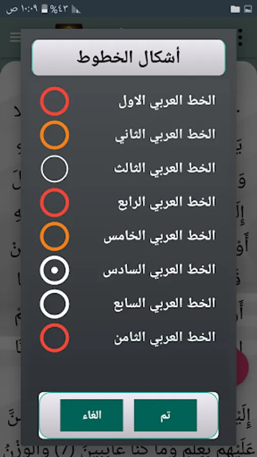 ◉ The ability to change the font shape within 8 Arabic fonts.
