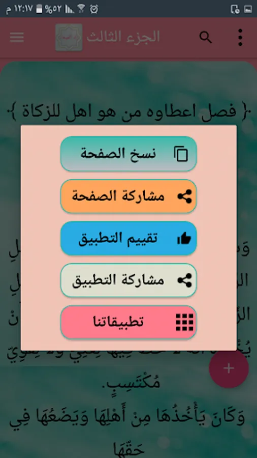 ◉ The possibility of copying and sharing any specific part of the section through prolonged pressure.