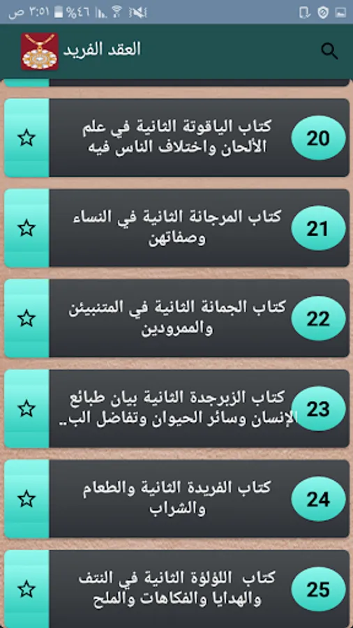 ◉ A list of the chapters of each book separately.