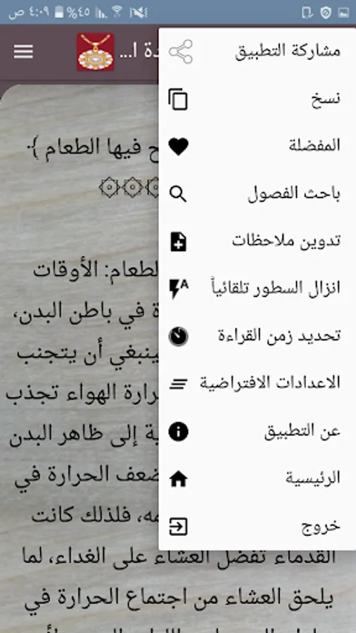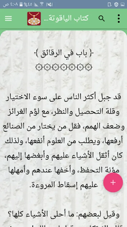 ◉ The possibility of changing the background color of reading the page to hundreds of colors.