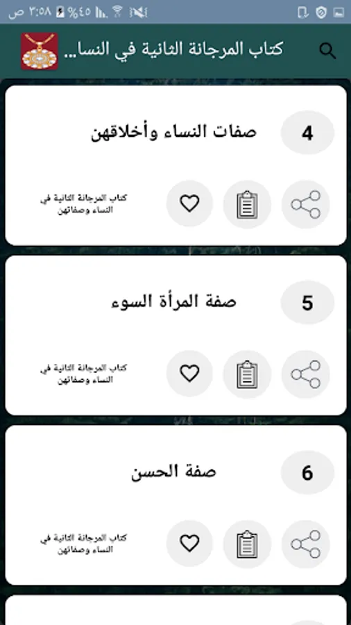 ◉ The possibility of copying and sharing any specific part of the section through prolonged pressure.