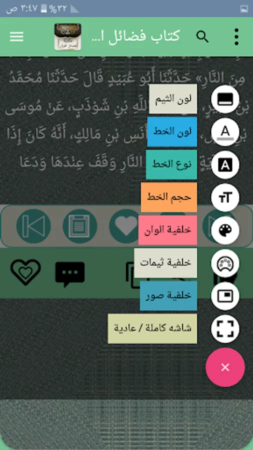 ◉ The possibility of changing the background color of reading the page to hundreds of colors.