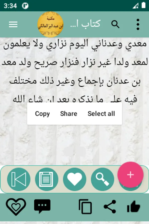 ◉ The possibility of copying and sharing any specific part of the section through prolonged pressure.
