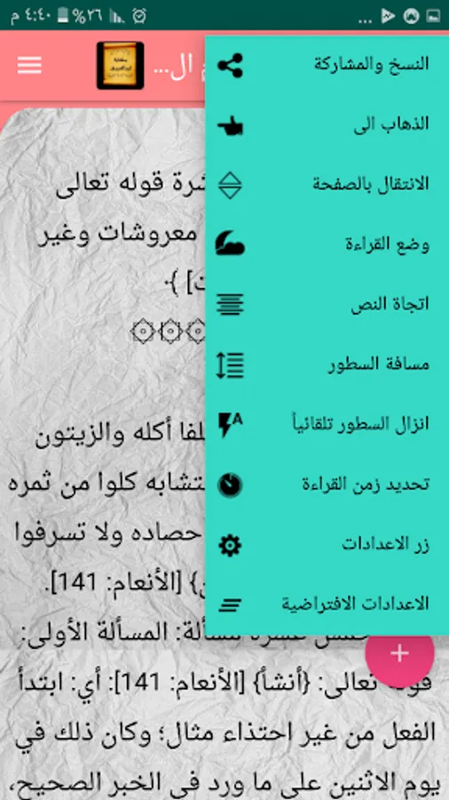 ◉ The possibility of changing the background color of reading the page to hundreds of colors.