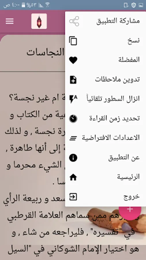◉ The possibility of changing the background color of reading the page to hundreds of colors.