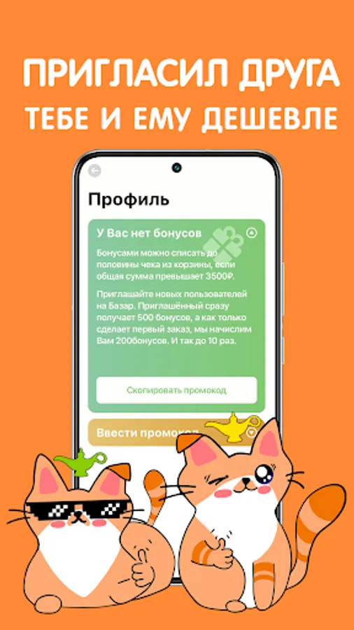 By ordering products from us, you become a member of the bonus program "It's more profitable with friends!", each new friend you invite to the Bazaar will immediately receive 500 bonuses, and as soon as he makes the first order, we will credit you with 200 bonuses. And so on up to 10 times.