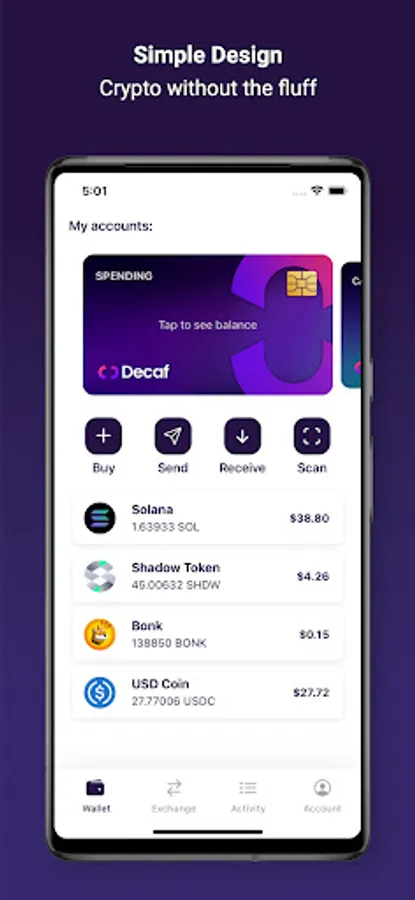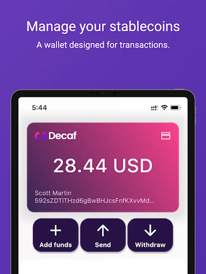 Decaf Wallet is your go to crypto wallet without all the fluff, built for micro transaction. Streamline your ordering experience when you buy from any merchant that uses Decaf Pay. The first wallet that integrates seamlessly with mobile only e-commerce platforms. The wallet is non-custodial, meaning you completely own your funds. With our newest integration with MoneyGram you will be able to on-and-offramp in more than 300k location in more than 200 countries.