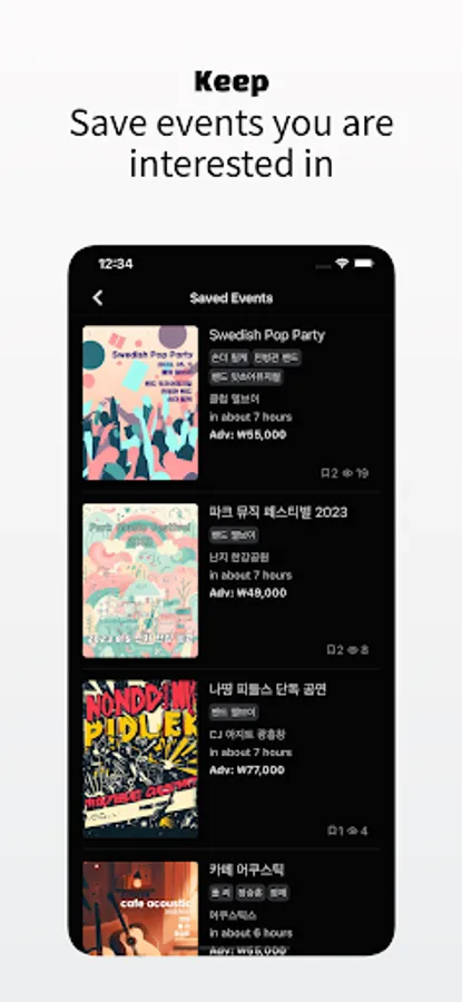 - Save live events you're interested in, your favorite musicians, and venues. Never miss an event.
