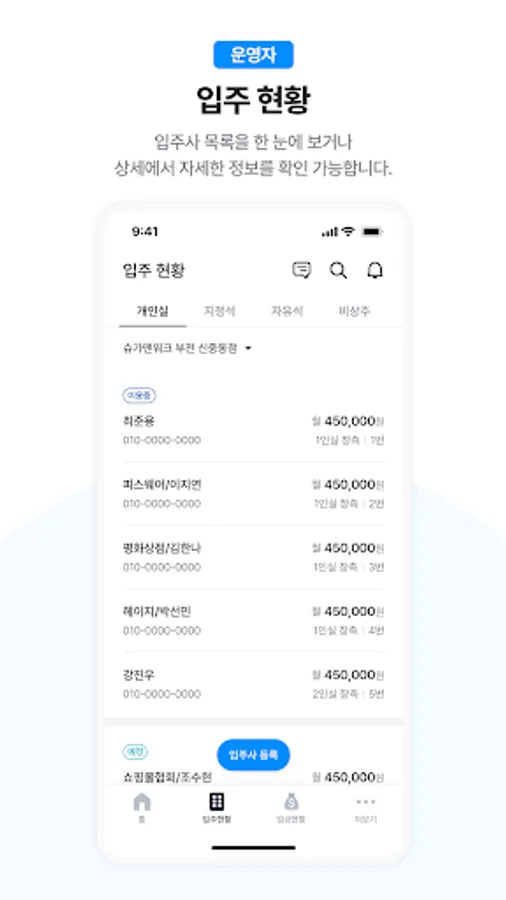 You can see the list of tenants at a glance or check detailed information in Details.