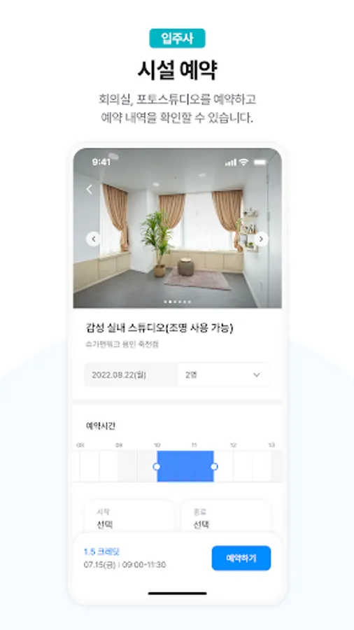 You can reserve meeting rooms and photo studios and check reservation details.