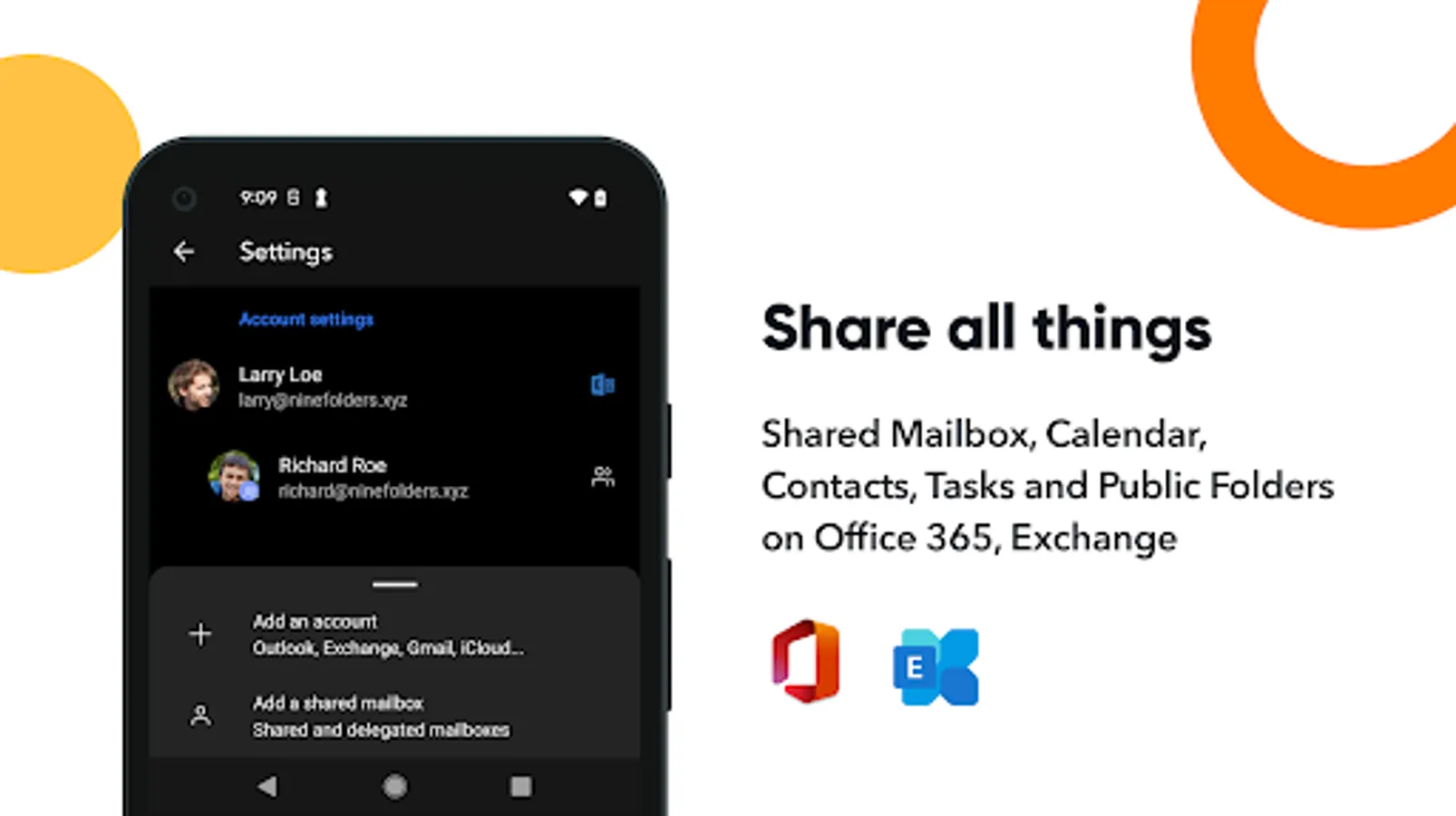 - Shared mailboxes and calendars.