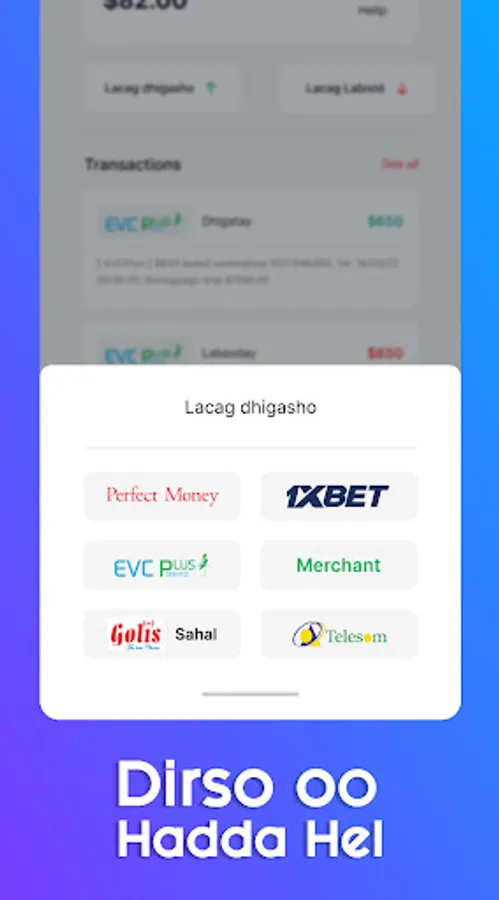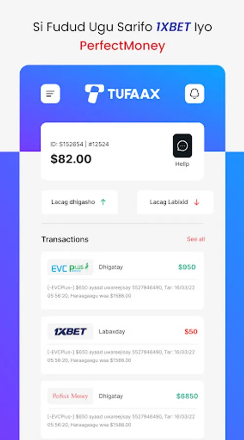 App-kaan waxaad ku sarifan kartaa kali lacaga kala duban.