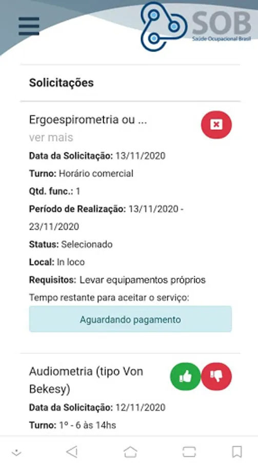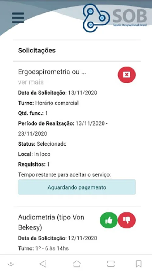 The application connects company managers to suppliers to simplify the provision of occupational health services such as: pre-employment, periodic, dismissal, PCMSO, PPRA, CIPA and many others.