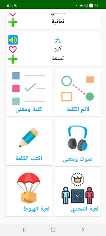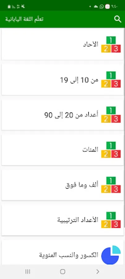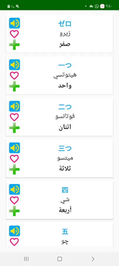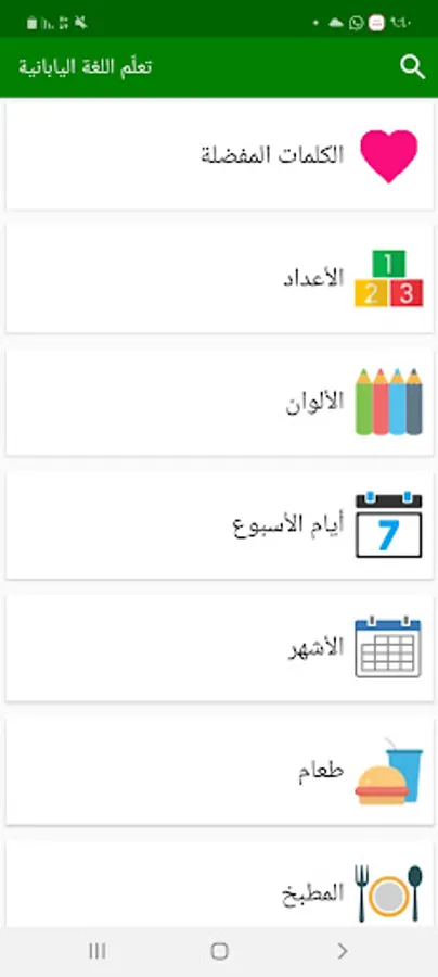 Each word is written in Japanese and also written in Arabic so that it helps the user to know how to pronounce the word or sentence