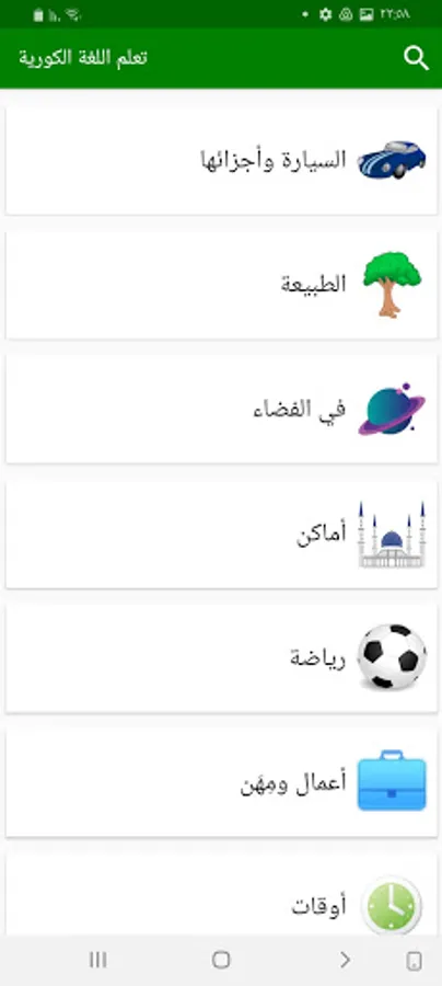 This application contains the most important words in the Korean language translated into Arabic with their pronunciation