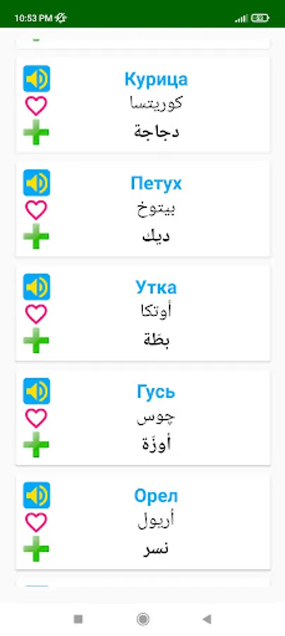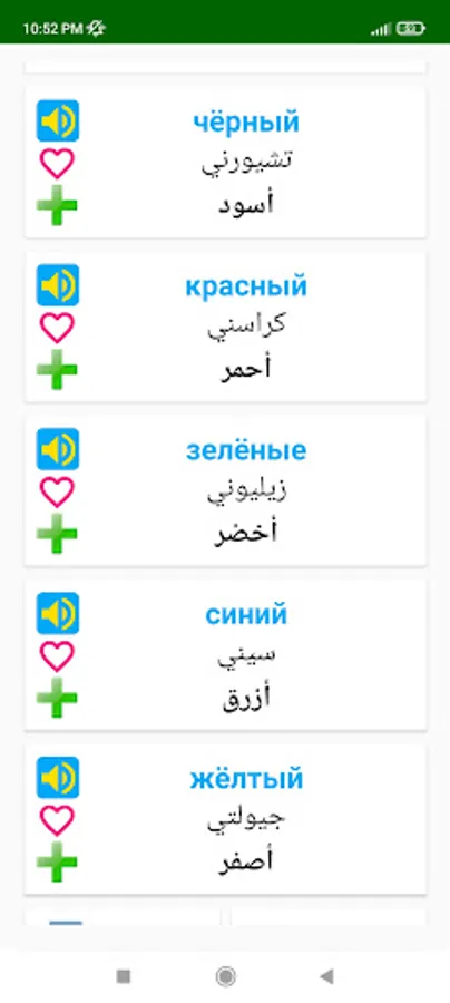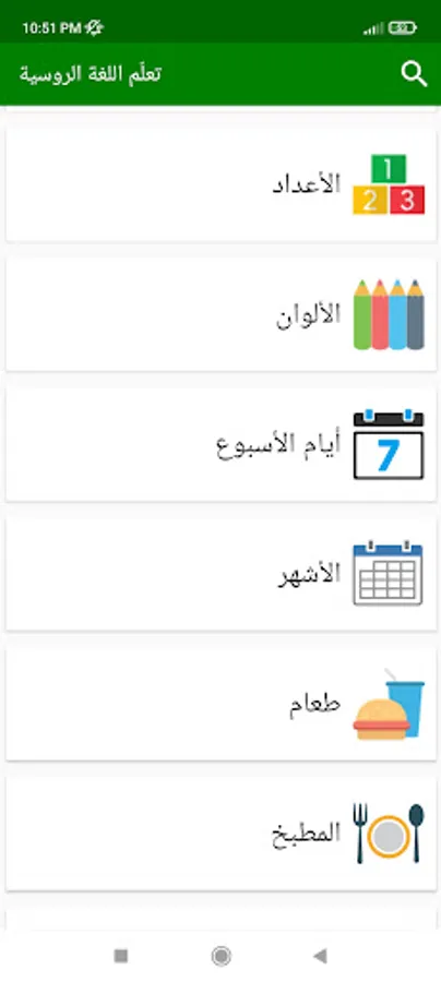 Every word and every sentence is written in the Russian language and also written in the Arabic language so that it helps the user to know how to pronounce the word or sentence.