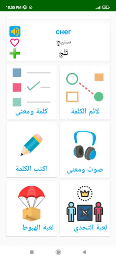 There are several games and tests in the application that help you practice memorizing words and sentences.