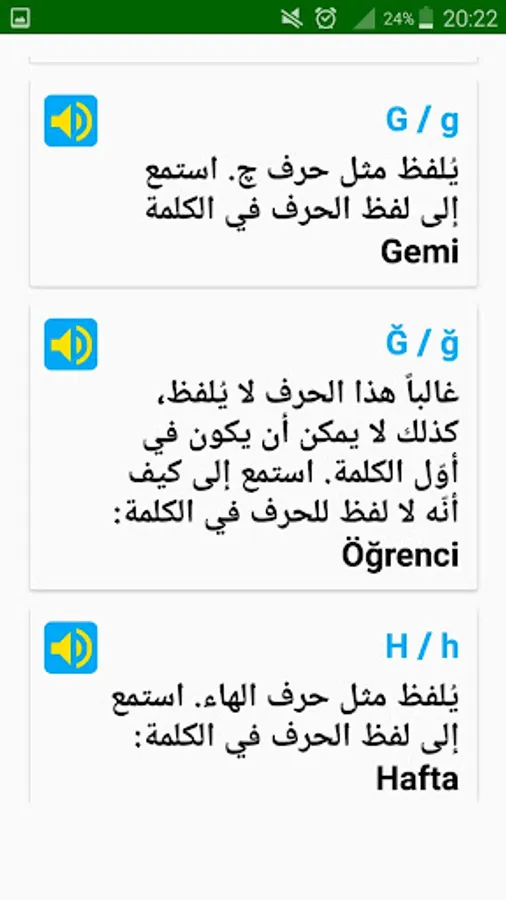 Every word and every sentence is written in the Turkish language and also written in the Arabic language so that it helps the user to know how to pronounce the word or sentence